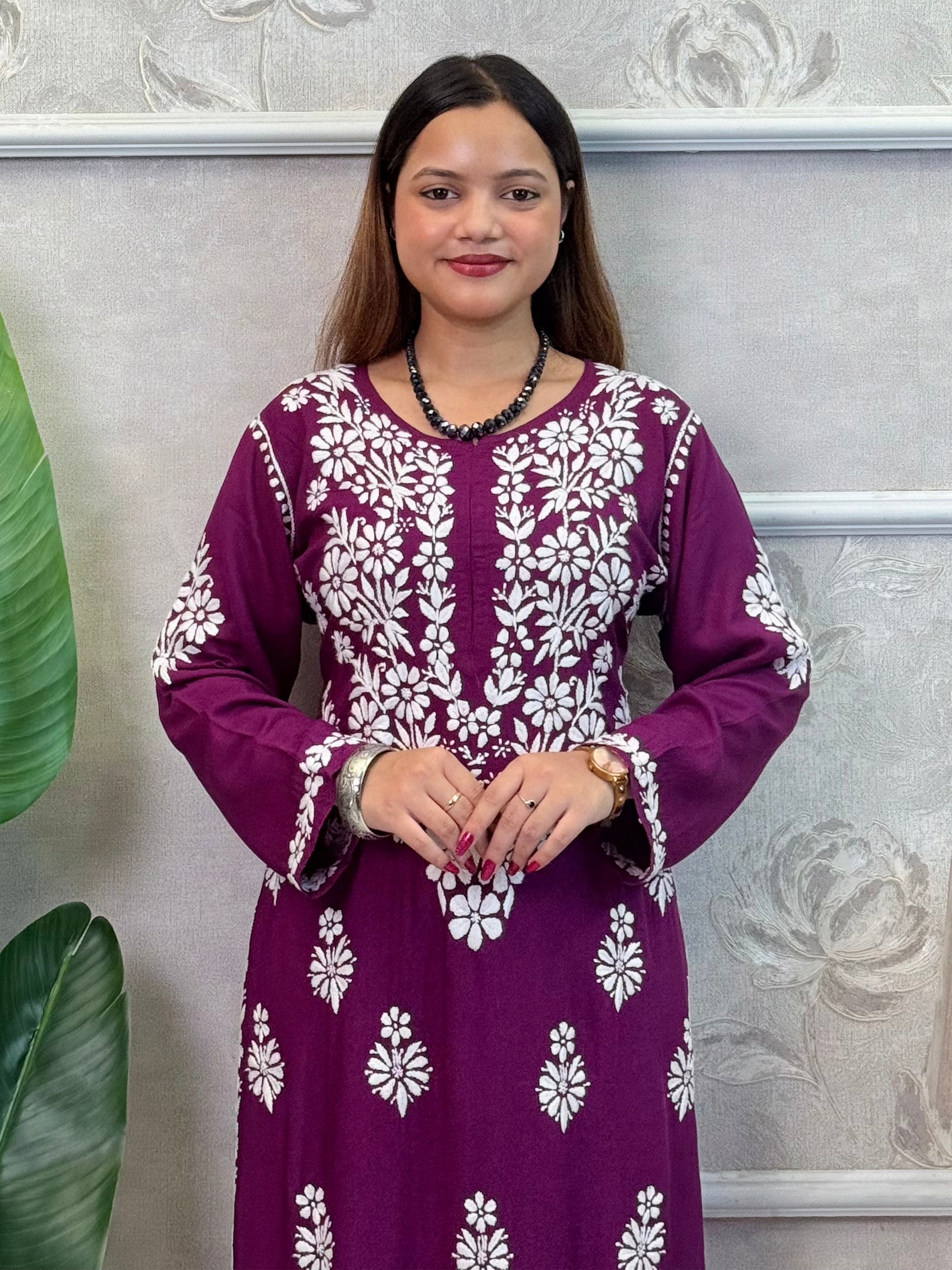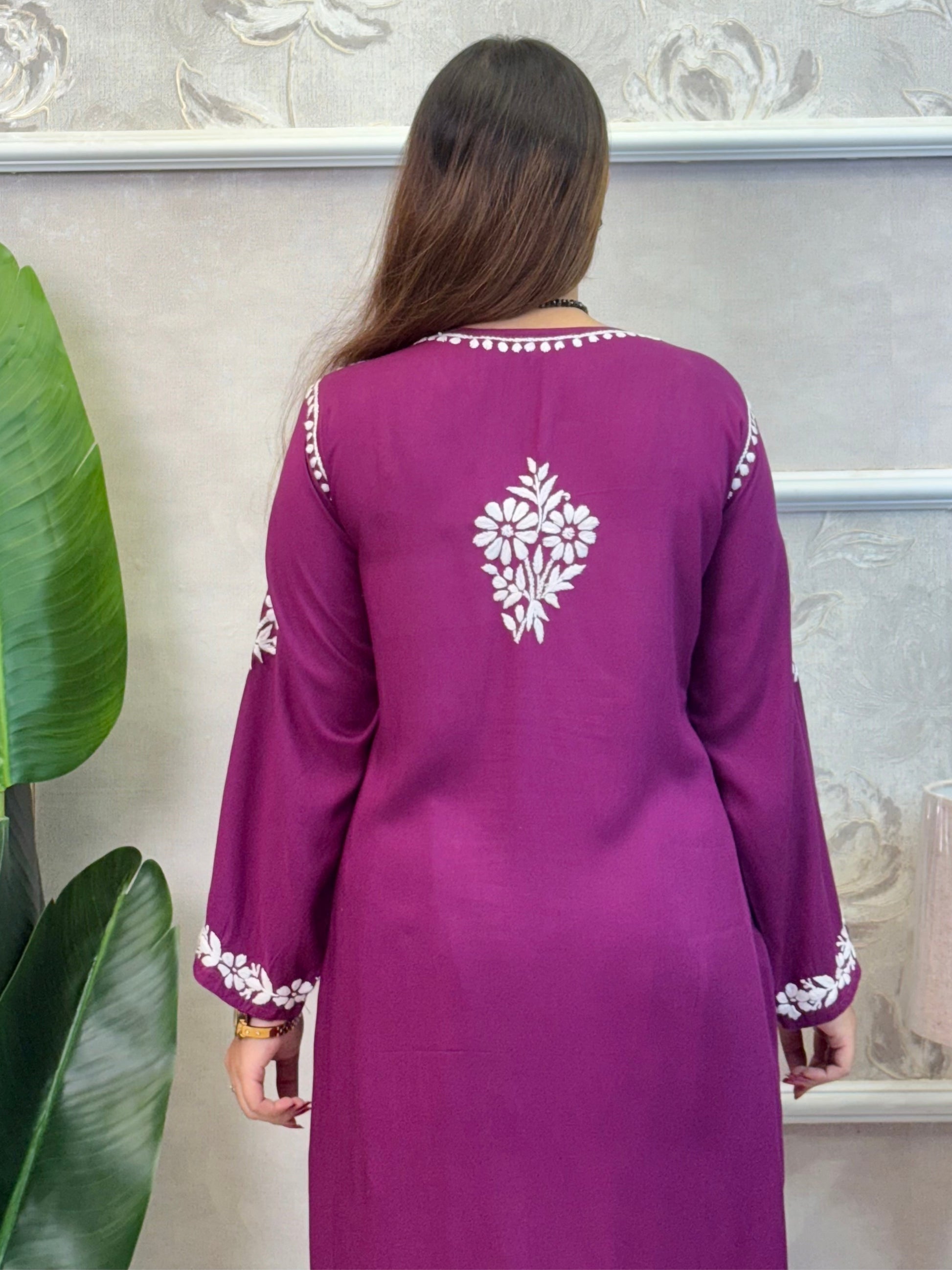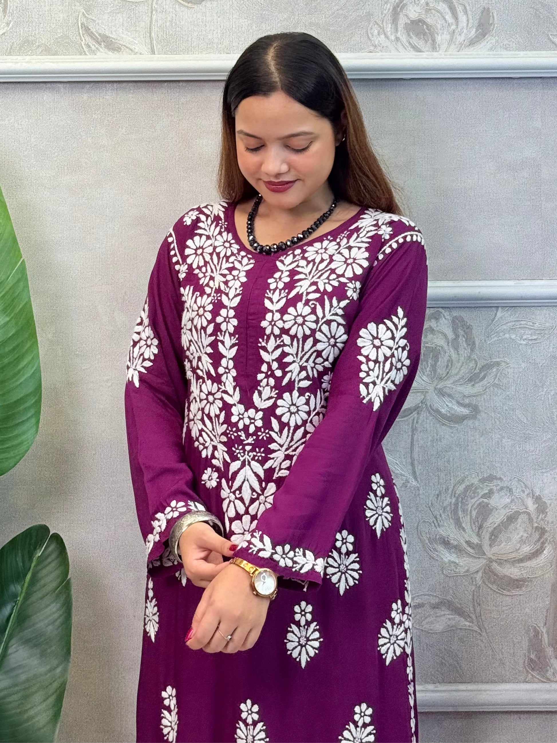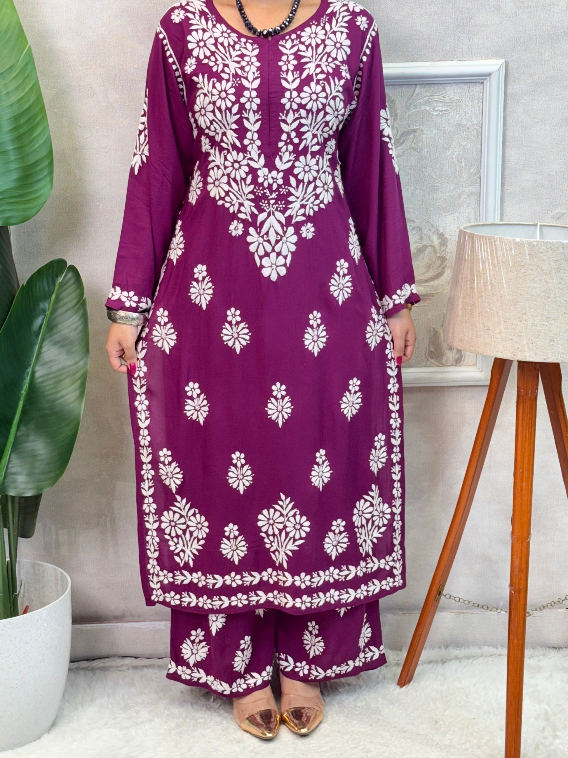 Lucknow Chikankari Plum Purple Modal Kurta Palazzo Set – Premium Hand Embroidery